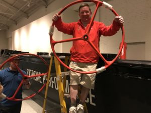 一次速度和创新收藏与项目副总裁莱尔斯·福布斯(Lyles Forbes)出现在了我们的展览日程中,他开始联系甲骨文公司,询问是否有可能获得他们的45艘藏品测试船中的一艘。几个月过去了,他联系了他能想到的每一个人,但他听到的都是沉默(显然,他们还在使用它们!)幸运的是,命运从一个不太可能的地方介入了——我的丈夫托德。托德在USCGC附属船,每年他都会搭乘USCGC鹰.去年,鹰在百慕大的码头上,就像水手们到达港口时习惯做的那样,他们找到了其他水手(甲骨文),聚在一起喝酒。