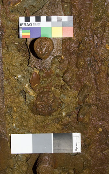 Posted onCast iron, like steel and wrought iron,is an alloy consisting primarily of iron and carbon but has a carbon content usually in the range of 2- 4%, which appears as flakes of graphite intermixed within the material. Commonly, when cast iron is submerged in a marine environment, the iron component corrodes away, leaving behind the graphite along with iron corrosion products. Iron in this state is often referred to as ‘graphitized’. Fortunately, even though the iron has corroded away, the shapes of cast iron objects recovered from marine sites often remain intact due to the surviving graphite holding the iron corrosion products in situ.