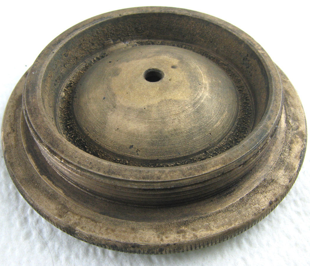 Posted onThis oil cup was discovered in 2001 in a mass of concretion withother various tools. These tools are most likely the spilled contents of a tool box and included different sized hammer heads, a small oil can, a lead ingot, and glass from a lantern. The mass was concreted to a large copper alloy pipe.