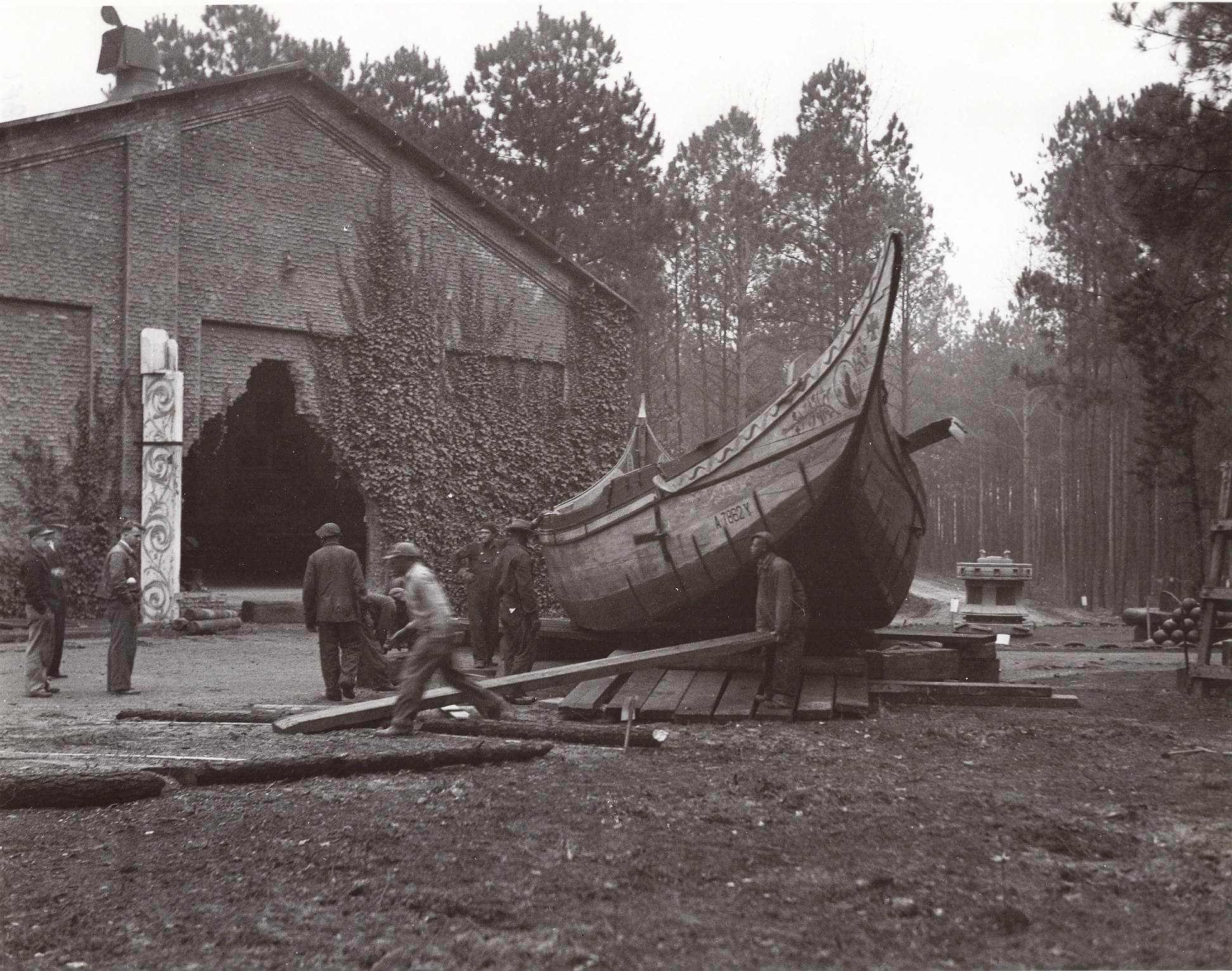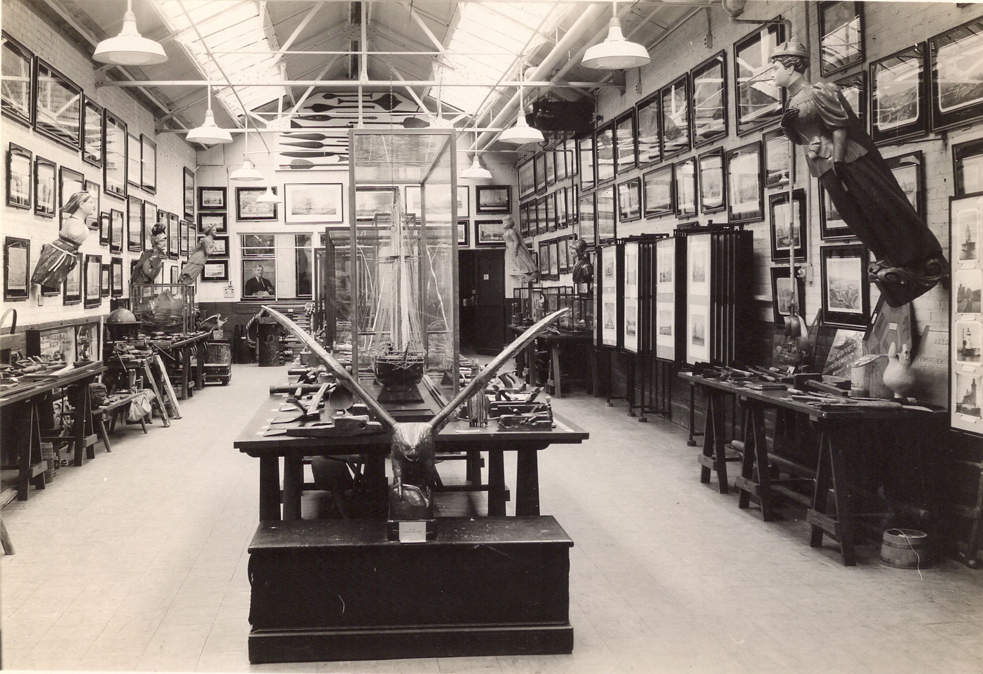 上图是1941年10月拍摄的另一张老照片。这个空间不像另一个那么凌乱,但仍然有很多东西在里面。背景中的船是一艘捕鲸船(accession # BU 02), 1933年由马萨诸塞州新贝德福德甲虫船制造公司的查尔斯·甲虫制造。它目前陈列在我们的精彩小飞船中心.前面是来自Narada游艇的Semiramis(登录号01)。她是苏格兰的Ramage和Ferguson在游艇的原型丢失后制作的。不幸的是,这位女士现在在仓库里。