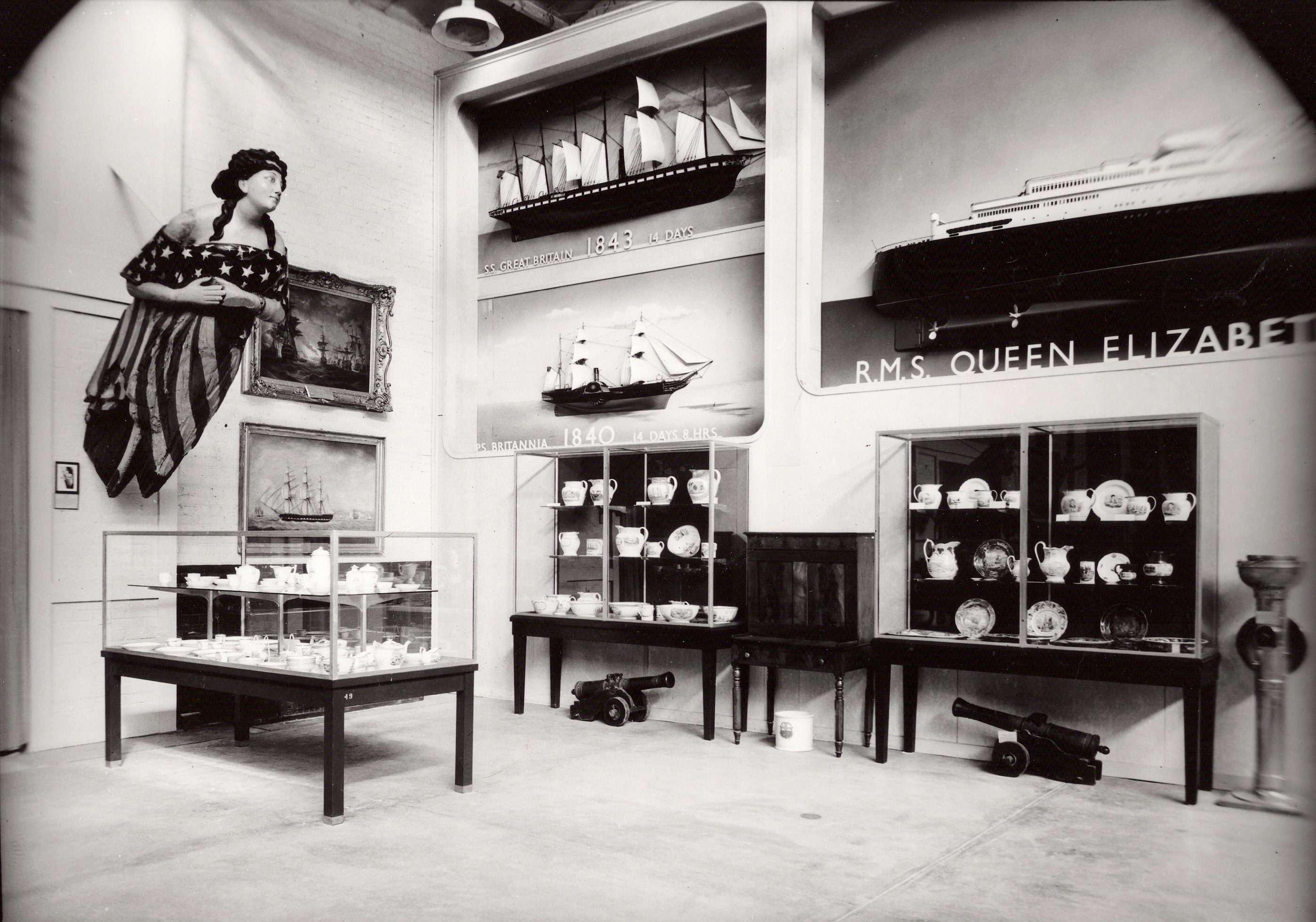 下一张照片摄于1953年3月,展示了今天被称为蒸汽大会堂的一角。左边的挂名号(编号0055)是铁质船体凭吊它于1879年由J.里德公司(J. Reid & Co.)在苏格兰格拉斯哥建造。我们也叫她哥伦比亚,现在还能在蒸汽大厅的展览中看到她,因为她是三年前被修复的。我喜欢这张照片,因为我喜欢看到所有的瓷器都那样陈列出来。我们一次不会放太多东西因为我们还没有举办过这样的展览。