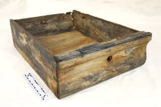 Elsa已经处理完从Monitor的炮塔中找到的一个木制抽屉。抽屉的铜壳里有一个铁锁装置。在埋藏过程中,锁机制被腐蚀掉,只留下木制抽屉和铜外壳。