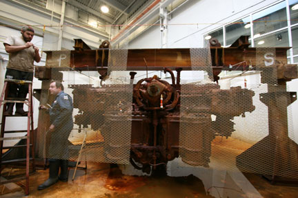 电解还原是用于金属伪像的保护处理,其中物体连接到电路的负侧,称为“阴极”。现代金属'阳极'靠近但不接触伪像并连接到电路的正侧。一旦罐装有含有称为电解质的化学物质的水,允许电解通过它容易通过,导通低压直流电源,并且发动机上的锈蚀和腐蚀开始通过电子流成化学减小。这使得腐蚀和混凝器更容易移除,并将有助于使发动机更容易分开。电解减少也具有加速释放在大西洋中花费的140年来建立的氯化物盐的释放的效果,绝对是一件好事!点击此处查看电解减少过程的动画://www.boxorats.com/sites/default/files/electrolyticreduction.swf