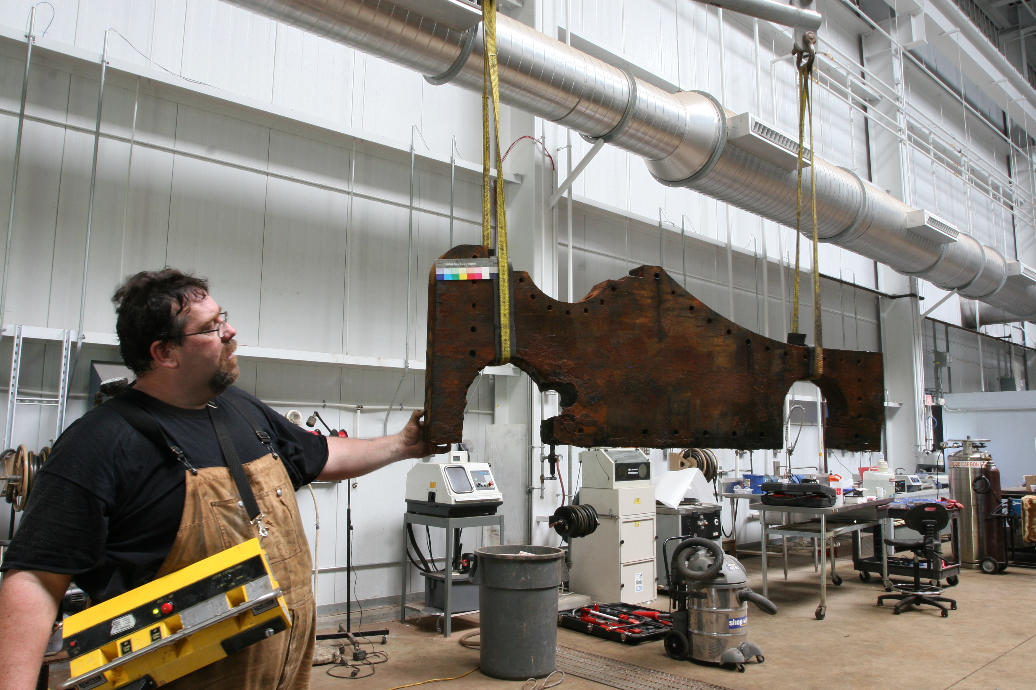 我们很幸运地有机会尝试SDI从Cold Jet中选择60个干冰喷射器。这台机器的安装并不太复杂。你把它接到一个空气压缩机上;在料斗中装入干冰颗粒或冰块,在我们的案例中,我们发现颗粒的工作效果更好,冰块或冰块被压入螺旋钻,将其刮除,然后将刮除的碎片从软管中发射出来,由操作员手持喷嘴。该系统的设置与其他磨料清洗方法没有太大的不同,但关于干冰喷砂的独特之处在于,在最后没有留下聚集体清理。如果你正在用玻璃珠子、沙子、碎核桃壳或其他介质进行研磨清洗,那么当你完成清洗后,你必须将这些介质的碎片从物体上清除掉。你可以跳过这一步与干冰爆破,因为你的介质只是升华。