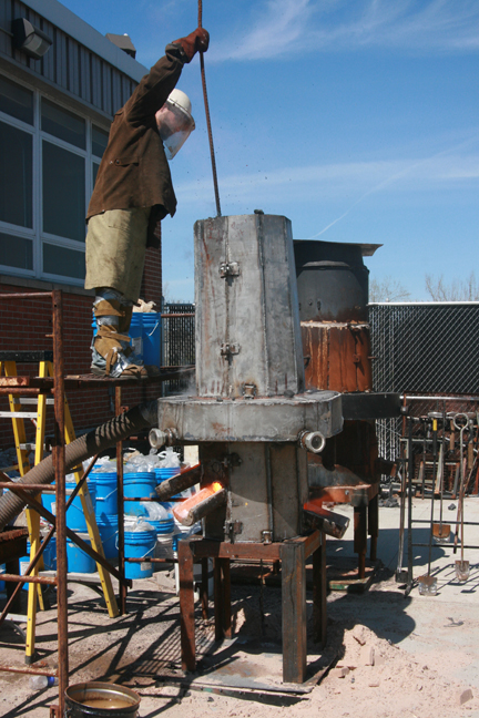 号监控中心 来自铸造厂:第三部分 贴在2010年4月9日2015年11月27日 布法罗,纽约:2010年4月9日 布法罗州立大学铸造厂的重要一天!明天的铁泼正在进行最后的准备工作。新建的铁炉内衬耐火粘土并进行组装。焦炭是煤燃烧的产物,燃料的供应已经到达,埃里克和威尔加入了其他人,把铸铁散热器拆成更容易熔化的小块。许多熟练的艺术家已经准备好了模具,但我想可以肯定的说,我们是唯一的团队重新创造了美国航空母舰的部分监控!阅读更多