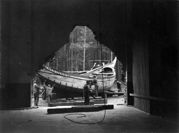 发表于几年前,我发布了一张类似的图片,显示这艘船和外面的洞。你可以看到这里。这是一个内部镜头,显示我们的葡萄牙渔船被搬进建筑物。这艘船非常大于50英尺长,13英尺宽,因此唯一的才能将其进入建筑物是在墙上的洞。