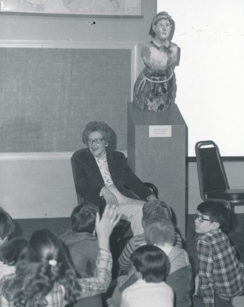 贴在这两张照片显示了为我们的旧机构照片编目是多么重要。不久前,我在“有趣的事实星期五”(Fun Fact Friday)上发了一篇关于我们的偶像厄玛·宾利(Irma Bentley)的文章,我们发现它雕刻在厄玛(宾利)默里夫人年轻时的肖像上。更多信息可以阅读在这里.我们出色的志愿者梅丽莎已经完成了这些照片的分类,当我翻阅这些照片时,我发现了一个文件夹,上面写着“厄玛·本特利计划”。显然,1983年,当厄玛参观博物馆时,她和一群学生谈论造船和雕像,如第一张图所示。第二张照片是厄玛和她的曾孙女。