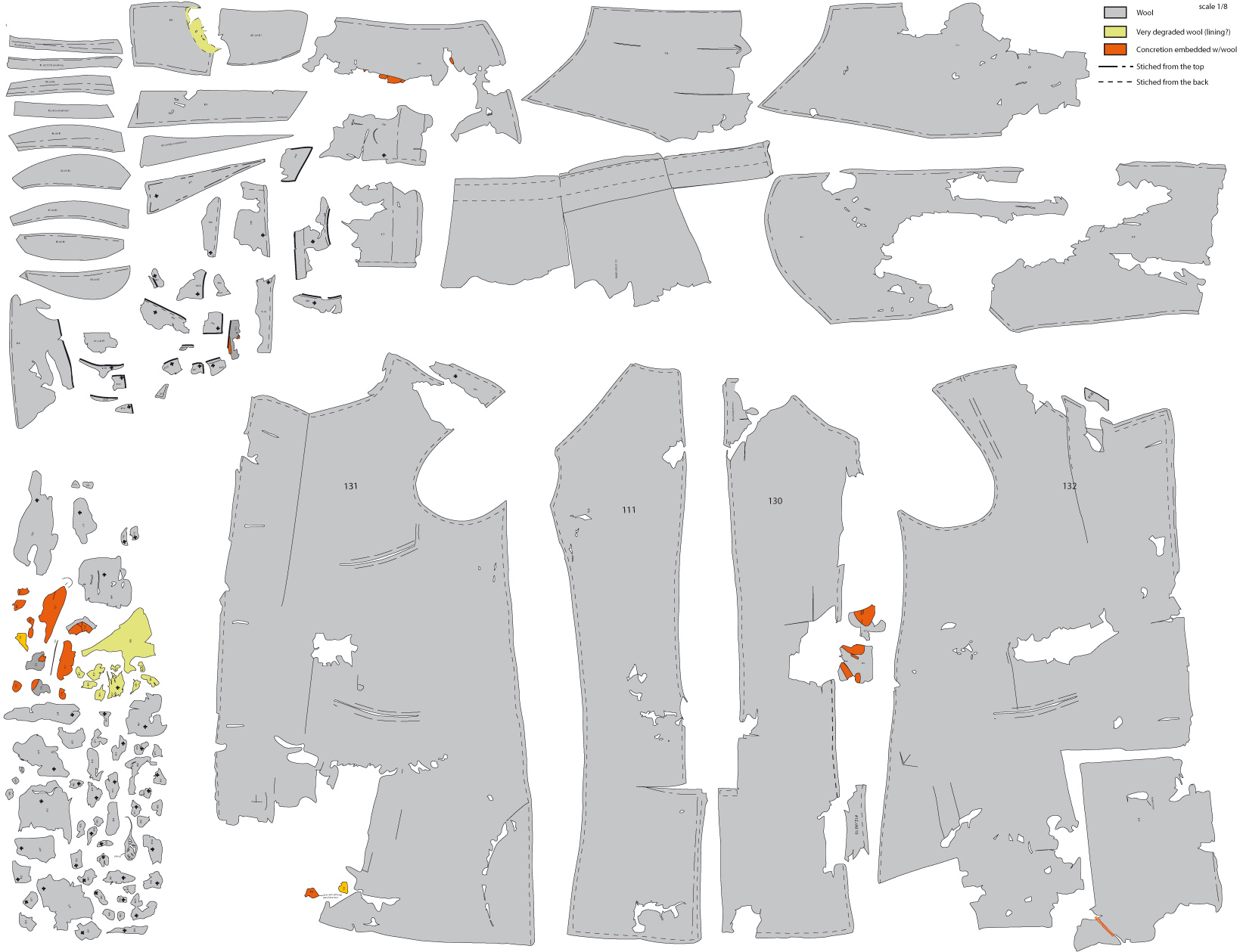 下面,ELSA指出纽扣孔和涂层中的口袋。即使在海底上140年后,一些拼接幸存者!