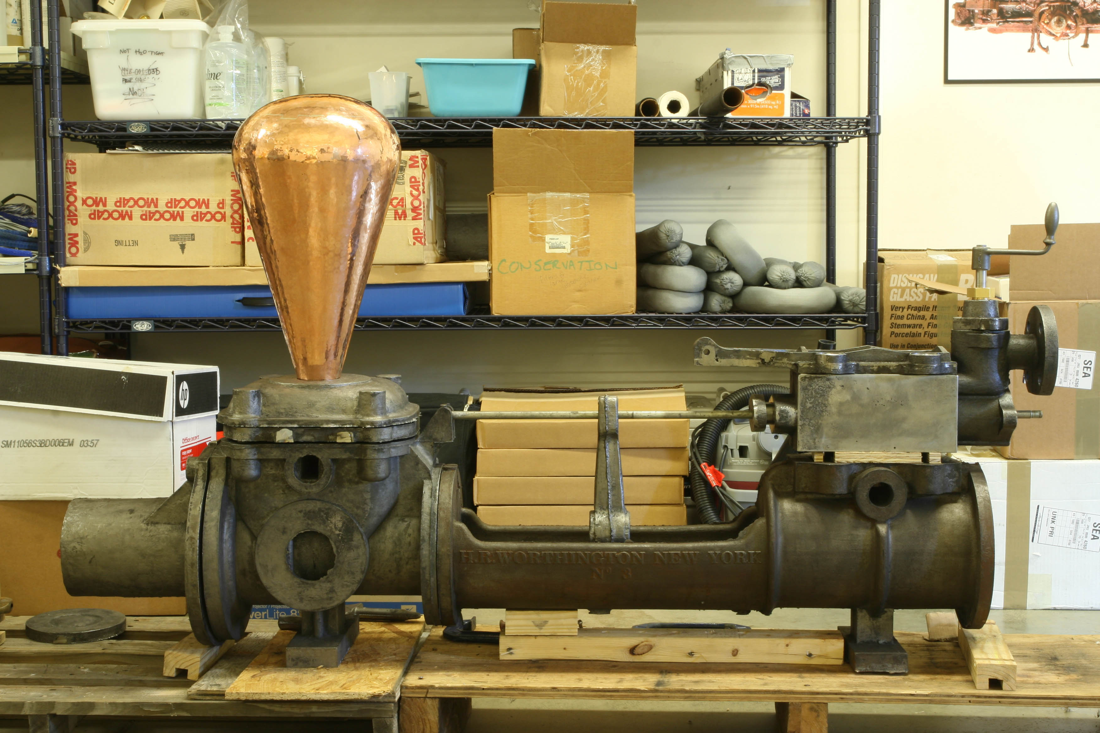 We use a variety of gear and equipment including overhead cranes, lifting straps and cables, shackles, chain hoists, lifting platforms, come-a-longs, pneumatic tires, dollies, forklifts, and good old-fashioned sweat and elbow grease. But sometimes even the best equipment and planning is no match for 140-years of exposure to a corrosive ocean environment. As a result, many of these treasured artifacts from USSMonitor在解剖和保护之后太不稳定了,无法搬出展览。