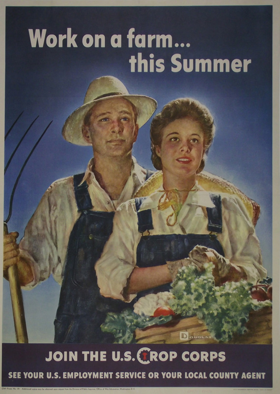 贴在这次我们有一些二战时期的海报。第一个是鼓励那些在后方的人在夏季为美国农作物军团(US Crop Corps)在农场工作,这样我们的海外部队就可以继续生产粮食。第二个更令人吃惊,暗示纳粹是基督教的敌人和威胁。第三件来自纽波特纽斯造船和干船坞公司,鼓励工人们继续生产,这样军队就有了需要的东西。