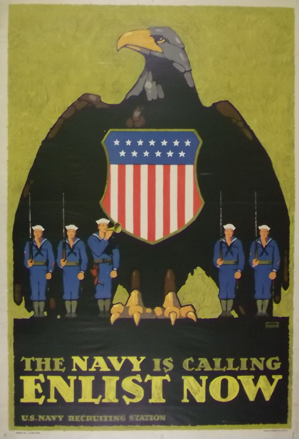 贴在我们的第一张海报显然是一张二战海报,鼓励人们记住珍珠港,加入海岸警卫队,帮助保卫国家。这张照片是由查尔斯·罗斯纳拍摄的。第二张海报的信息和第一张几乎一样,只是没有提到珍珠港。这两张海报都是在弗吉尼亚州诺福克的征兵办公室里用的,这可能就是我们最终得到它们的原因。第三张海报是我最喜欢的海报之一,我想是因为我通常不会把太空旅行和海军联系在一起。这是1955年一位不知名的艺术家的作品。