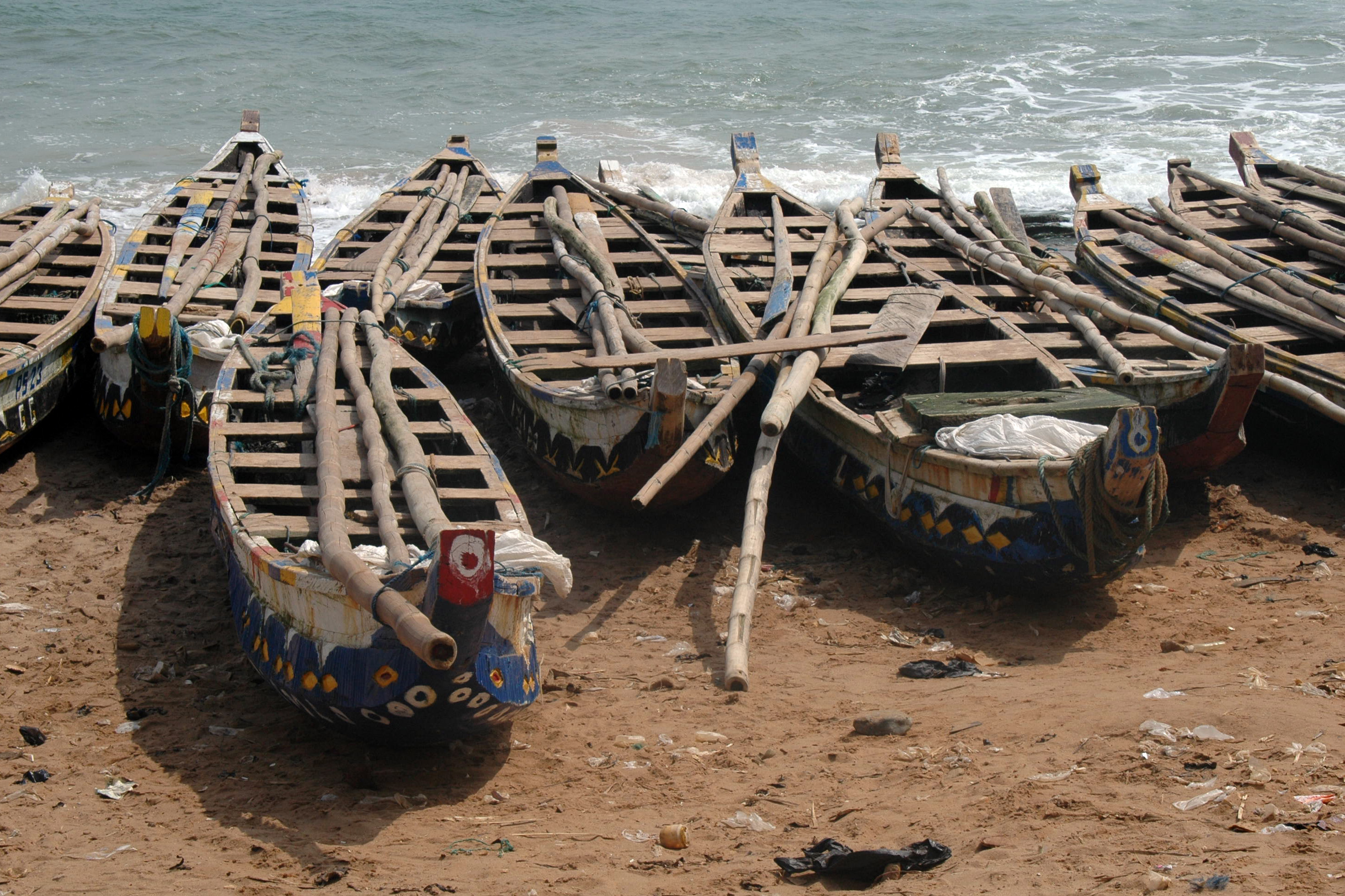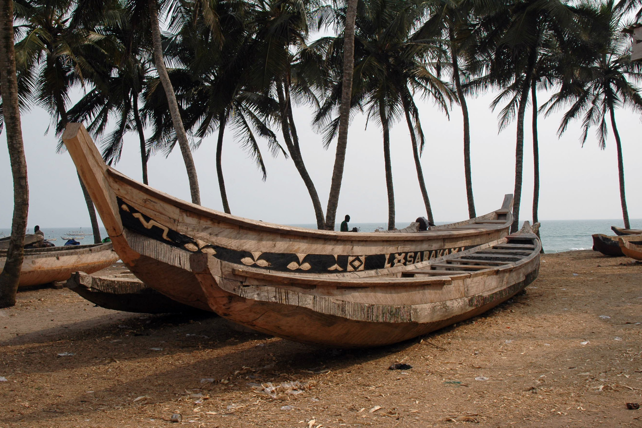 Ahimas被用于加纳海岸的漂网捕鱼。这些独木舟大致是从该国内陆的一棵大树上挖空,然后用卡车运到海岸,在那里完成并下水。