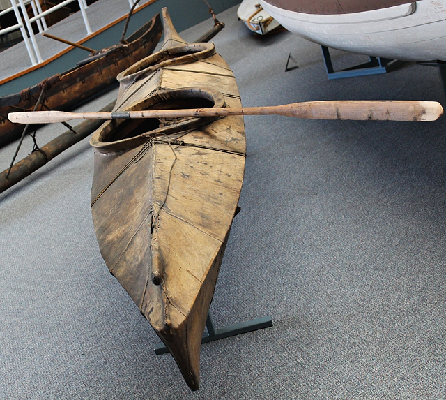 几千年来,皮划艇是当地沿海环境中唯一的交通工具。它是在北极水域狩猎的完美船,因为它适合航海,可以在不发出很大噪音的情况下靠近猎物。原住民用这艘船来捕猎海象、海豹和海獭,这些动物为独木舟提供了食物、衣服和防水罩。
