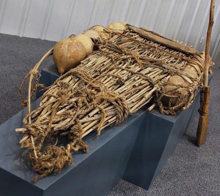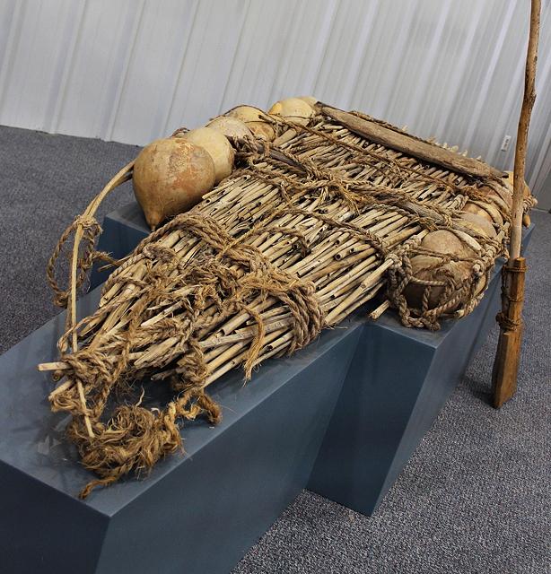 Chatti筏 船舶 效果:材料 类型:筏 作文:里德 的地方:非洲 大小: 9' 0" x 3' 6" 日期: 20世纪中期 捐赠:赫尔曼·贝尔博士的礼物 博物馆的位置:23 用尼罗河沿岸发现的大量的纸莎草芦苇,可以很快地造出一个木筏。 chati Raft, 20世纪中期阿拉伯埃及共和国赫尔曼·贝尔博士的礼物 用尼罗河沿岸发现的大量的纸莎草芦苇,可以很快地造出一个木筏。然而,芦苇往往变得潮湿,需要修理或更换。添加了木板和葫芦来增加筏子的浮力,当芦苇被水浸透时,这些东西可以重复使用。 起源:阿拉伯埃及共和国 回到探索 Chatti筏
