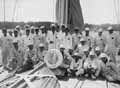 Sir Sopwith and Lady Sopwith at the Wheel of theEndeavour与机组人员 埃德温Levick, photographer The Mariners' Museum Research Library and Archives, 埃德温Levick Collection